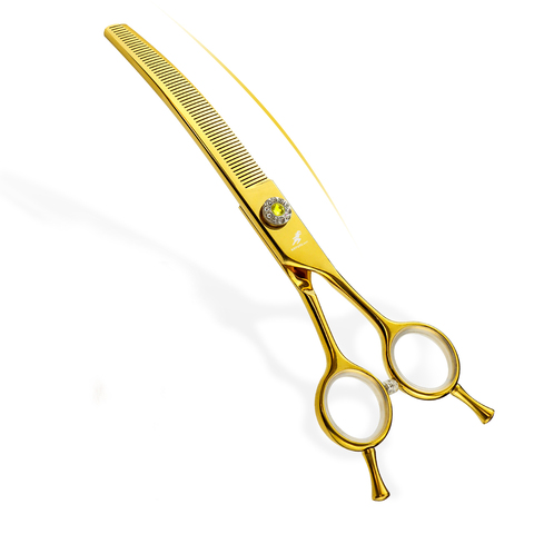 7.0inch Golden Japan 440c Curved Fishbone/Dense Scissors Paint Shaped Scissors Pet Grooming Veterinary Scissors