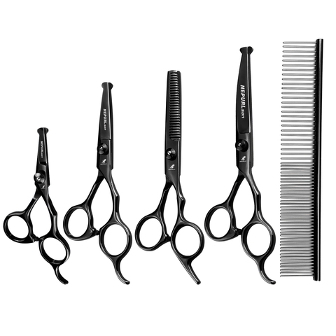 NEPURLson Professional Pet Scissors Split Shear 5 Scissors Pet Curved Scissors Stainless Thinner 5 in 1 SET