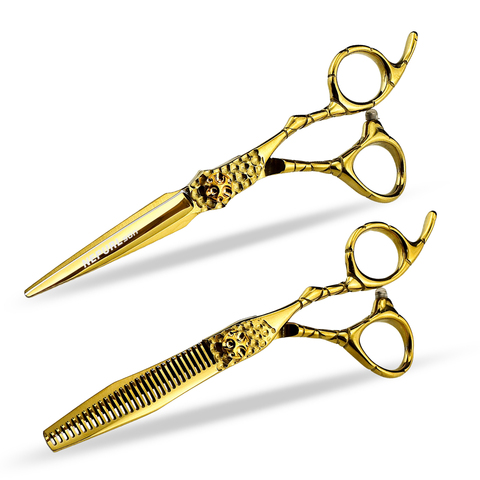 6.0 Inch Golden New Fashion Design Beauty Barber Scissors Flat Scissors Tooth Hair Scissors